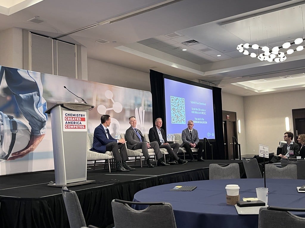 5月5日のパネルディスカッションでは、ACCのクリス・ヤーンCEOの司会のもと、カナダ化学工業協会(CIAC)のグレッグ・モファットCEO、ホールスター社のジョン・パロCEO、シェブロン・フィリップス・ケミカル社のスティーブ・プルサックCEOが登壇した。この3人は、化学業界のサステナビリティ専門家の聴衆を前に、それぞれの見識を披露した。