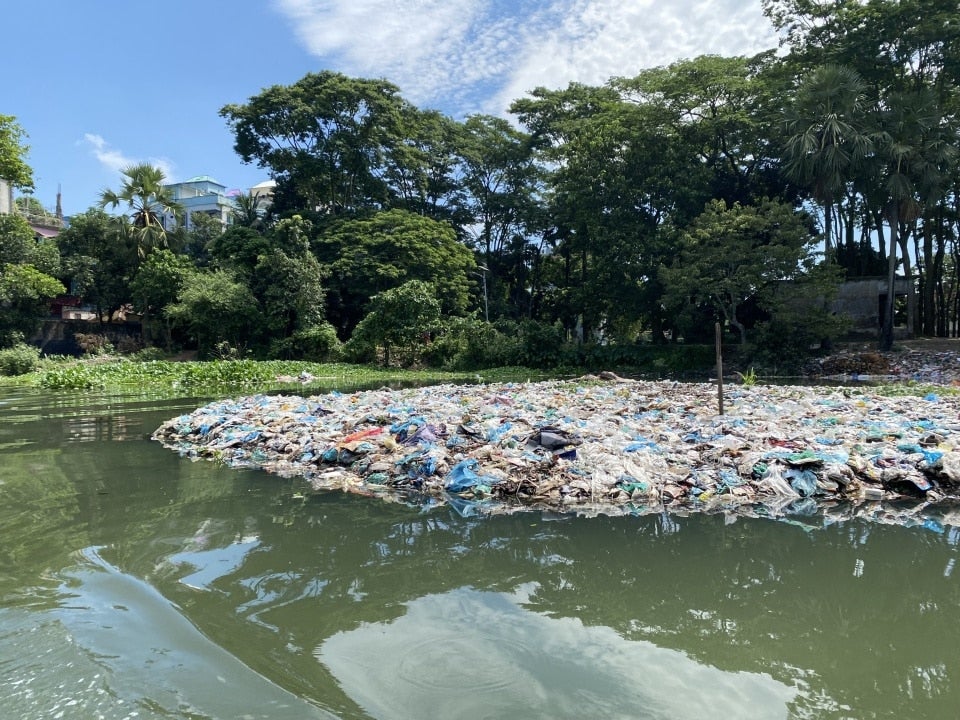 写真のキャプション:バングラデシュの川に浮かぶプラスチックの島(Ganna Pogrebna)。