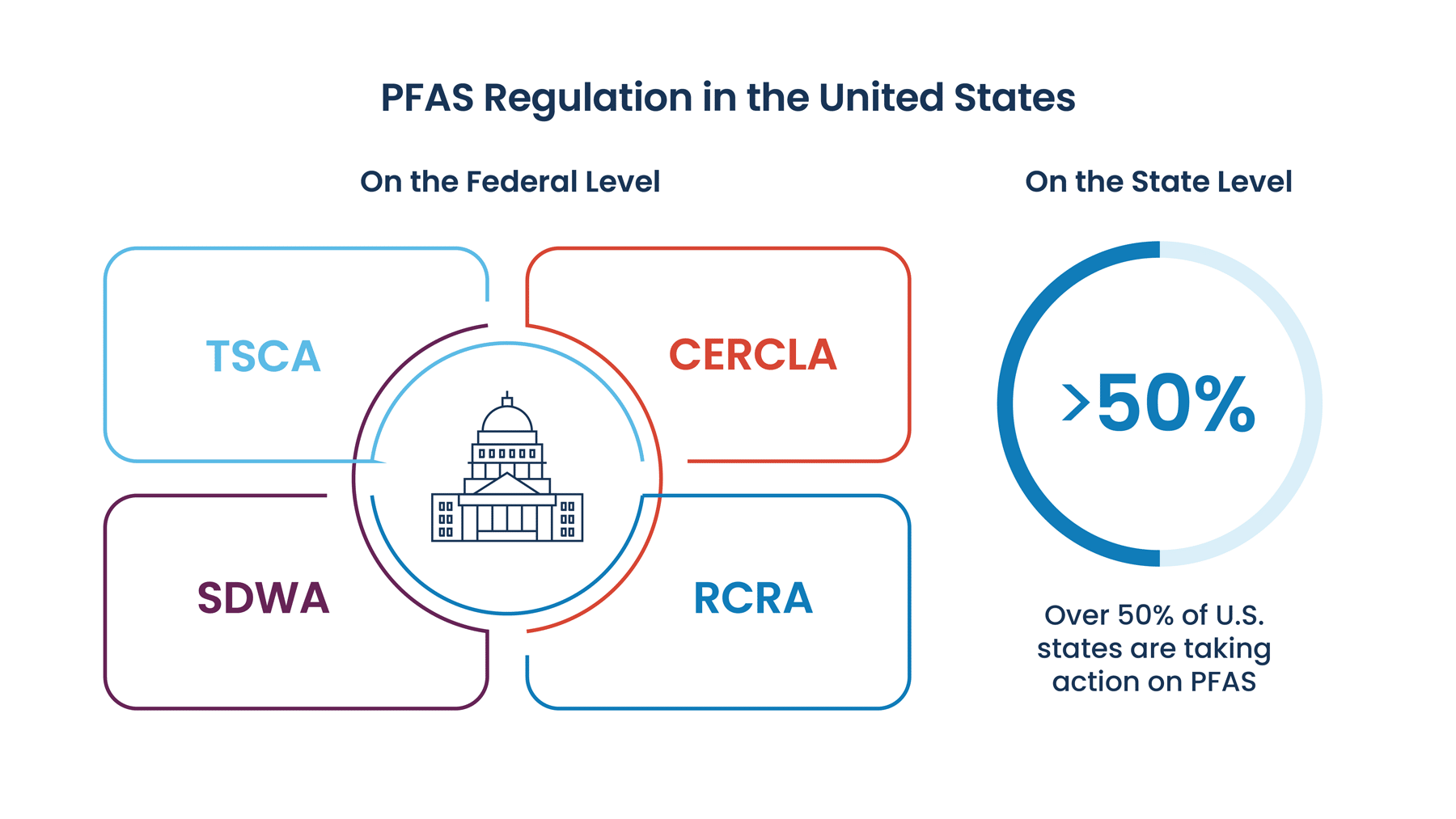 前述したように、米国は連邦レベルでPFASに対処するため、多くの法令や規制の選択肢を採用しています。 以下のリストには、PFAS規制に関する最近の動きが含まれています。