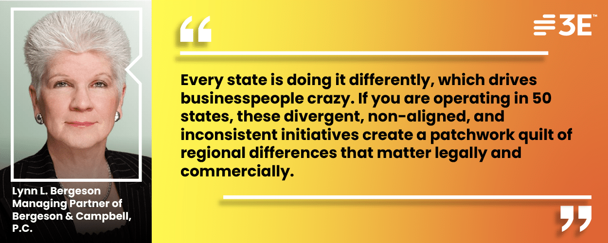 このような無数のPFAS規制や訴訟を、企業がどのようにうまく切り抜けることができるかを探るため、3EはワシントンD.C.にあるBergeson & Campbell, P.C.のマネージングパートナー、リン・L・バーゲソン氏と対談した。