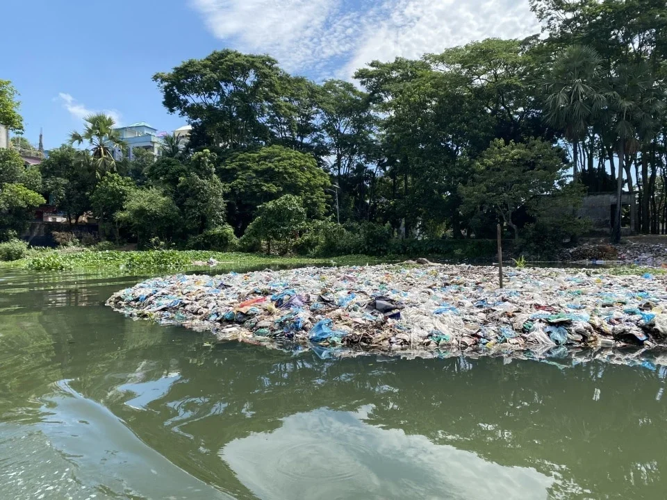 Photo Caption: Island of plastic floats in a river in Bangladesh (Ganna Pogrebna).