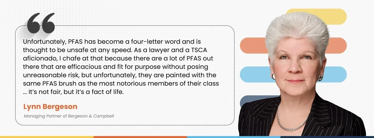 Unfortunately, PFAS has become a four-letter word and is thought to be unsafe at any speed. As a lawyer and a TSCA aficionado, I chafe at that because there are a lot of PFAS out there that are efficacious and fit for purpose without posing unreasonable risk, but unfortunately, they are painted with the same PFAS brush as the most notorious members of their class. Entities continuing to use PFAS do so at a considerable risk and must take steps to prove doing so poses no danger. It's not fair, but it's a fact of life.