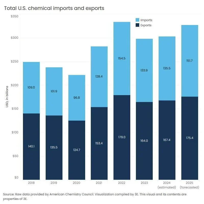 In the last few years, building supply chain resiliency has become more and more of a focal point for companies looking to future-proof their businesses. COVID, intensifying weather due to climate change, and geopolitical conflicts over the past several years have emphasized the need for flexibility and agility in supply chains in a globalized, interconnected world. Global chemical trade has grown over the past six years and is expected to continue doing so. While China and the U.S. are leading in chemical exports, India, Southeast Asia, and the Middle East are emerging as major producers.
